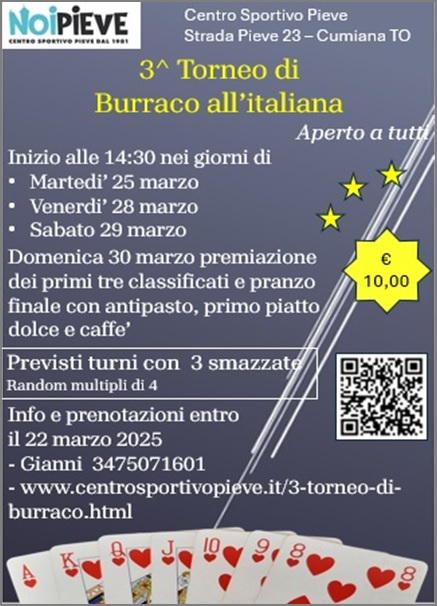Quest'anno, il nostro "CENTRO SPORTIVO PIEVE" ha ospitato il terzo torneo di burraco, e che successo!