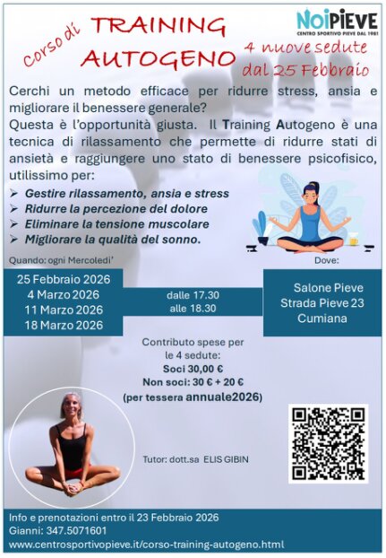 Un corso di training autogeno insegna a raggiungere uno stato di rilassamento profondo attraverso esercizi graduali di respirazione, concentrazione e autogestione della mente e del corpo.