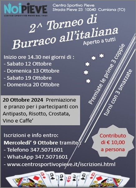 Unisciti a noi per il 2° Torneo di Burraco al Centro Sportivo Pieve!